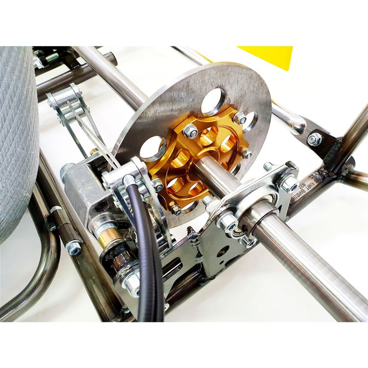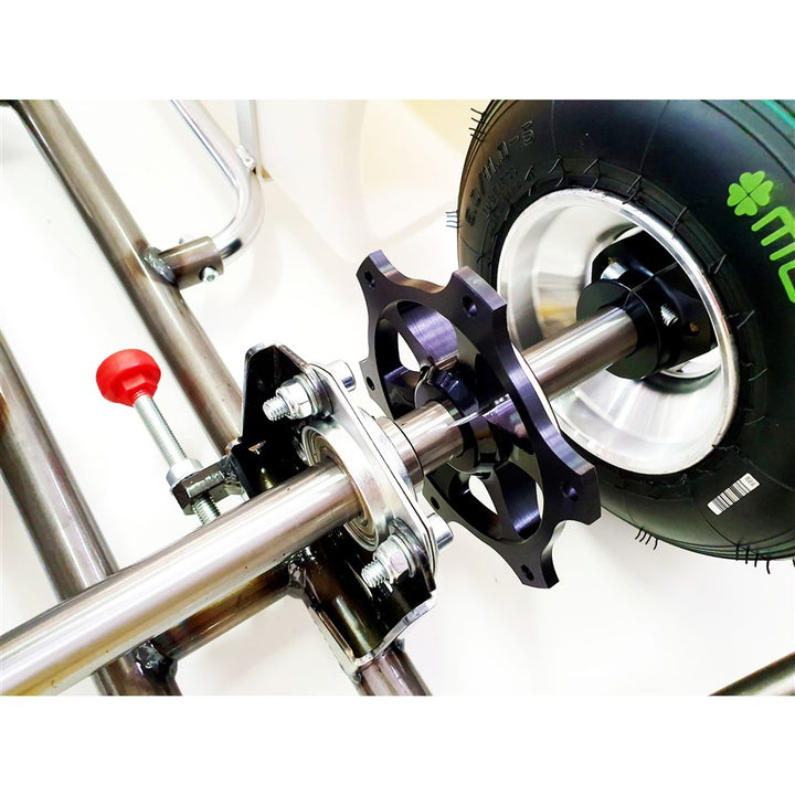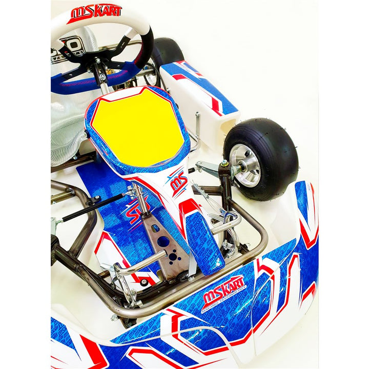 The BABY chassis is the smallest go-kart of our product range and it has been designed to meet the needs of the youngest racers. The frame with a wheel base of 785 mm is made of quality chrome-molybdenum tubes of diameter 26 mm. The chassis is equipped with a mechanical brake and aluminum wheel rims. The KG bodywork model PUFFO is underlined by the latest design of MS KART stickers which provide our smallest kart chassis an attractive look.