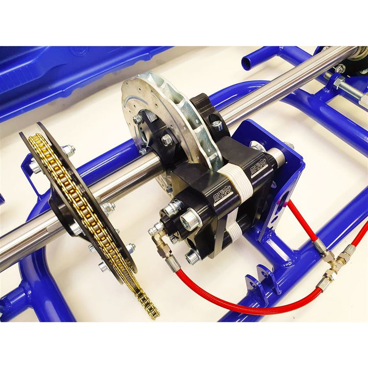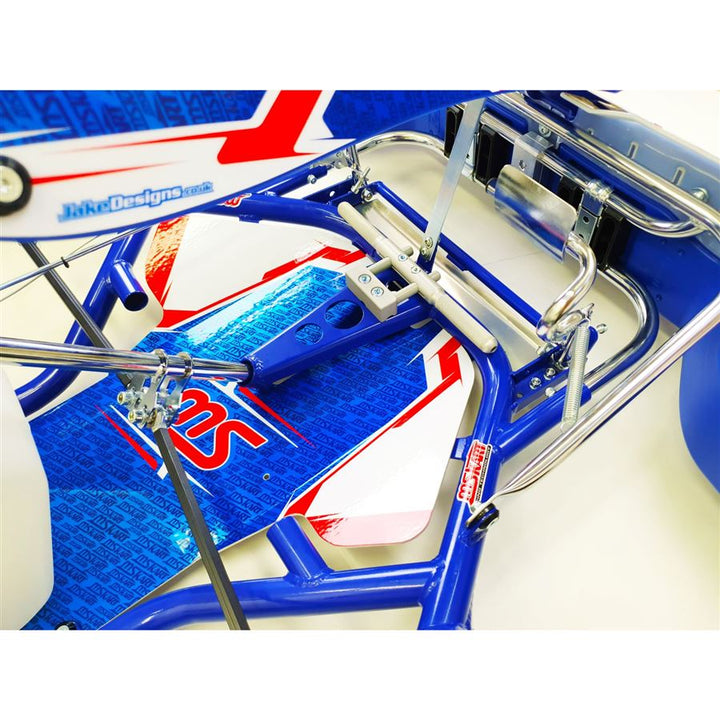 The castor and camber of the front axle can be set up very easily by the exclusive Sniper adjusters. In the standard version, the MS PROKART chassis is equipped with MS ENDURANCE hydraulic brake system in combination with a self-ventilated floating brake disc.